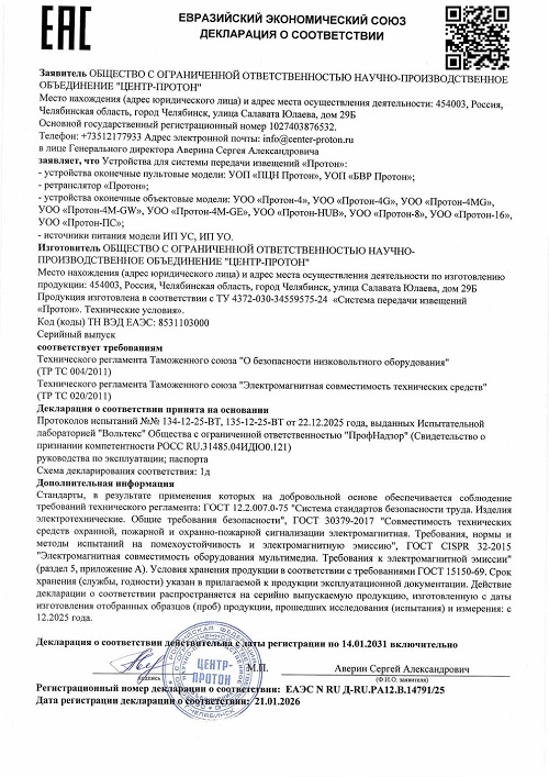 Пожарный сертификат ППКП/ПОО "Протон" 2024г.